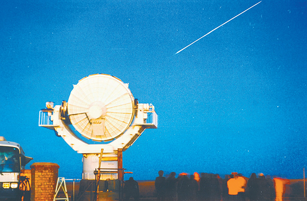 史總珍藏著一張照片:一部雷達(dá)仿若一只大眼睛,正“注視”著暗藍(lán)天空上劃過的白色“流星”——那不是流星,而是神舟五號,艙內(nèi)航天員正是“航天英雄”楊利偉。